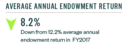 The study showed the average annual return, net of fees, for FY 2018 declined to 8.2%. This is a large decrease when compared to the FY 2017 12.2% average return, net of fees.