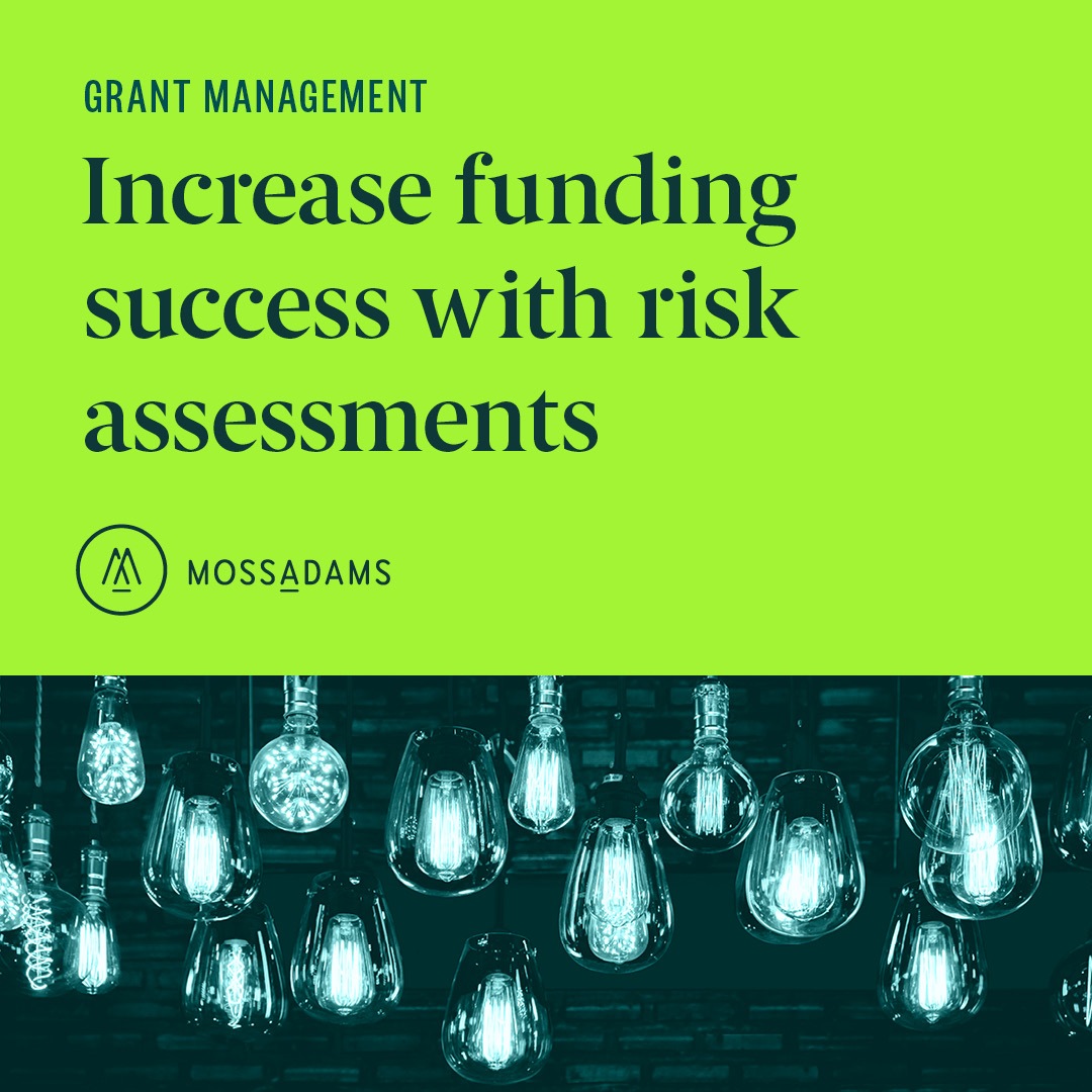 To learn risk assessments can improve your organization’s grant management and funding success, contact your Moss Adams professional.