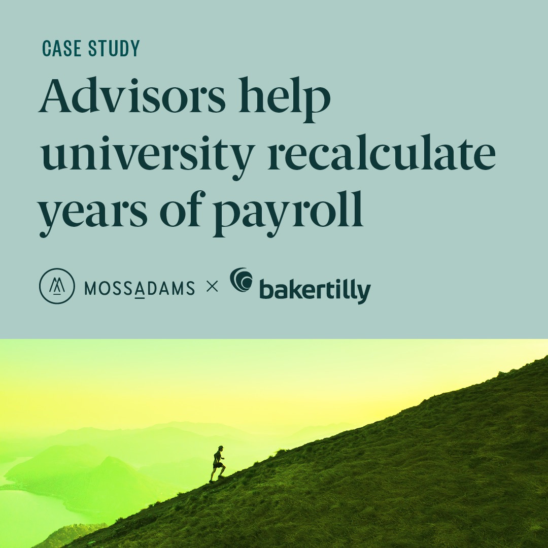 To find out more about how a payroll recalculation could help your institution of higher education, contact your firm professional.