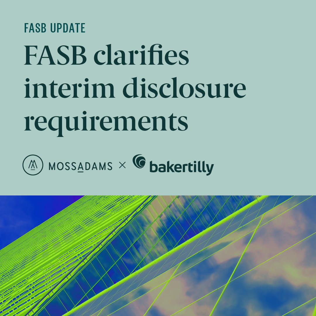 Baker Tilly US, LLP, Baker Tilly Advisory Group, LP and Moss Adams LLP and their affiliated entities operate under an alternative practice structure in accordance with the AICPA Code of Professional Conduct and applicable laws, regulations and professional standards. Baker Tilly Advisory Group, LP and its subsidiaries, and Baker Tilly US, LLP and its affiliated entities, trading as Baker Tilly, are members of the global network of Baker Tilly International Ltd., the members of which are separate and independent legal entities. Baker Tilly US, LLP and Moss Adams LLP are licensed CPA firms that provide assurance services to their clients. Baker Tilly Advisory Group, LP and its subsidiary entities provide tax and consulting services to their clients and are not licensed CPA firms. ISO certification services offered through Moss Adams Certifications LLC. Investment advisory offered through either Moss Adams Wealth Advisors LLC or Baker Tilly Wealth Management, LLC.