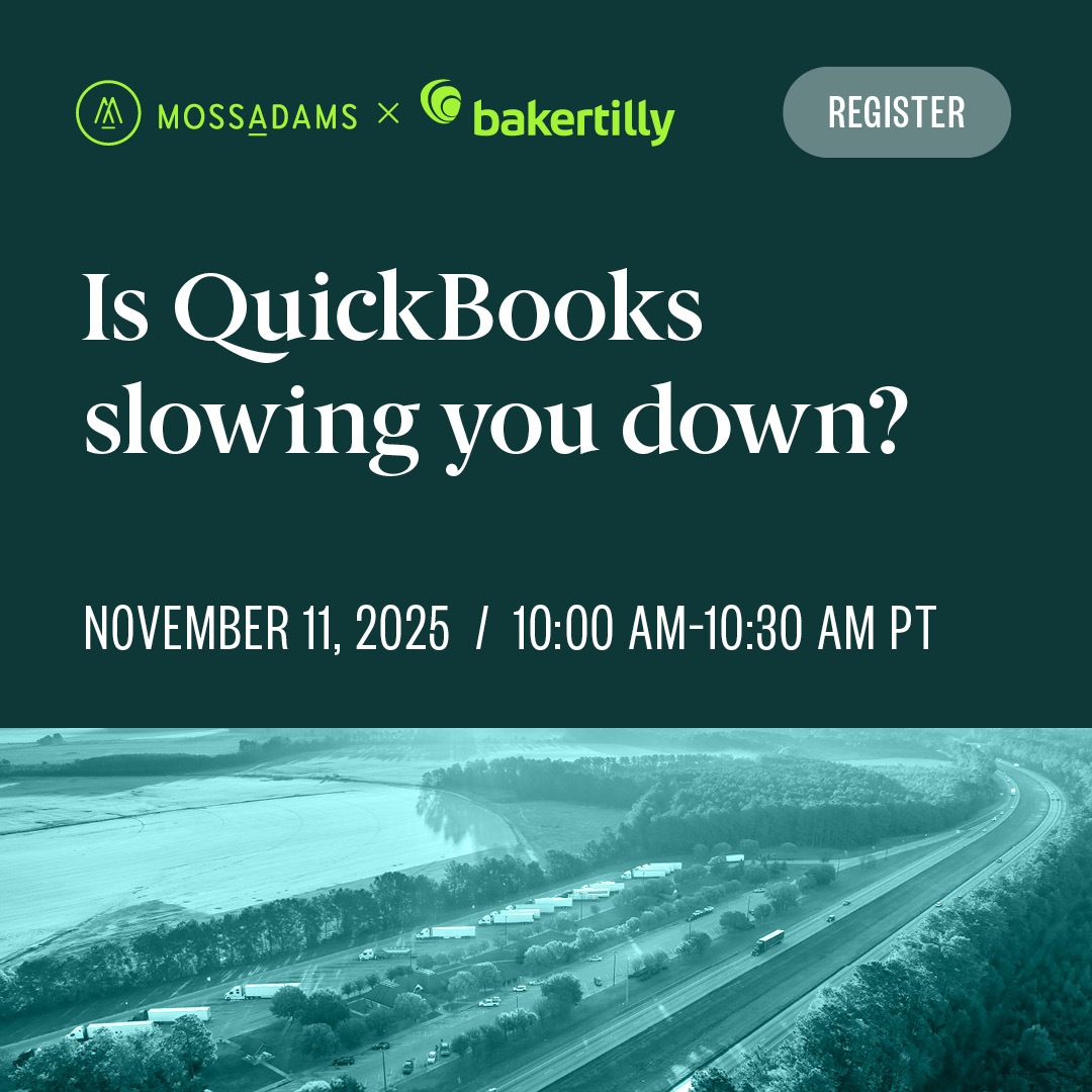 Baker Tilly US, LLP, Baker Tilly Advisory Group, LP and Moss Adams LLP and their affiliated entities operate under an alternative practice structure in accordance with the AICPA Code of Professional Conduct and applicable laws, regulations and professional standards. Baker Tilly Advisory Group, LP and its subsidiaries, and Baker Tilly US, LLP and its affiliated entities, trading as Baker Tilly, are members of the global network of Baker Tilly International Ltd., the members of which are separate and independent legal entities. Baker Tilly US, LLP and Moss Adams LLP are licensed CPA firms that provide assurance services to their clients. Baker Tilly Advisory Group, LP and its subsidiary entities provide tax and consulting services to their clients and are not licensed CPA firms. ISO certification services offered through Moss Adams Certifications LLC. Investment advisory offered through either Moss Adams Wealth Advisors LLC or Baker Tilly Wealth Management, LLC.