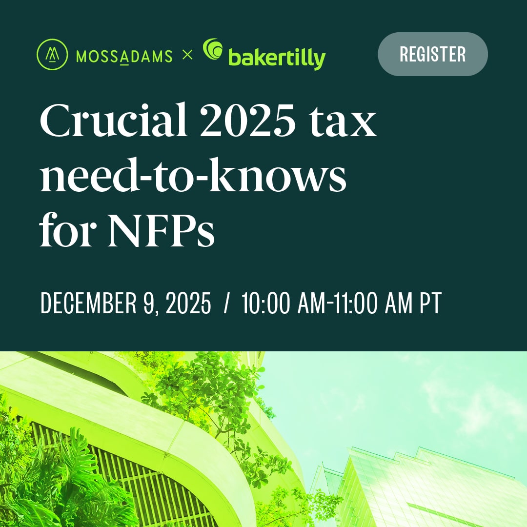 Join us for our webcast, Year End 2025 Tax Update for Not-for-Profit Organizations, in which we’ll explore important tax updates and developments from the Department of Treasury affecting tax-exempt organizations as well as the following topics.