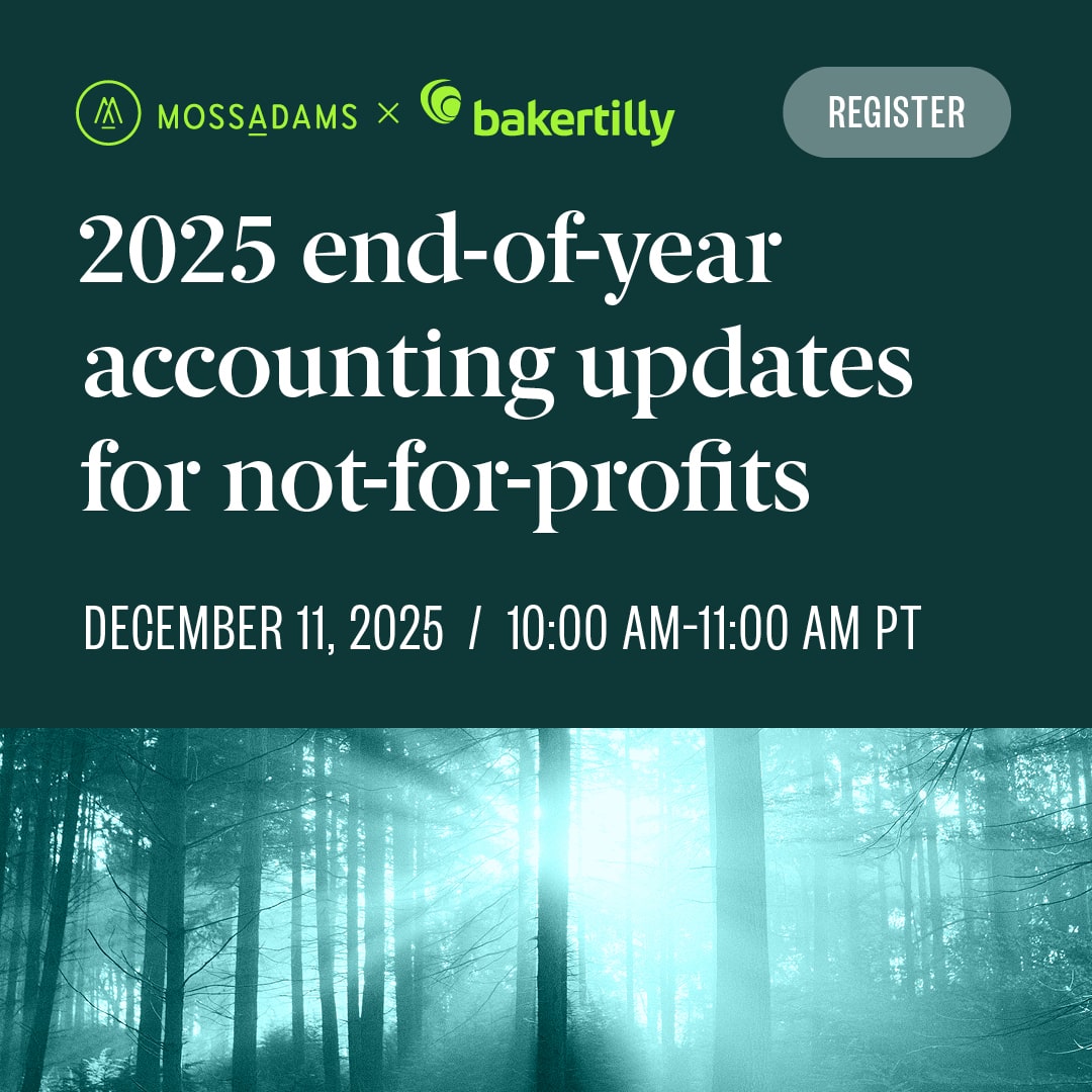 Join us for our webcast, 2025 End of Year Accounting & Audit Update for Not for Profit Organizations. We’ll discuss what we’ve learned from newly adopted accounting and auditing standards and industry updates critical to not-for-profit organizations.