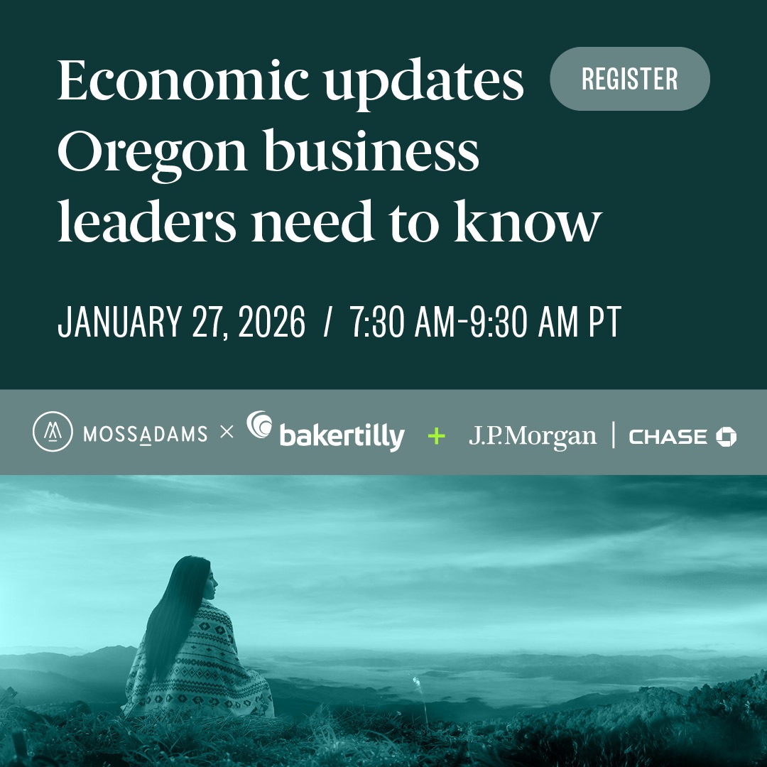 Join us for an insightful breakfast in Lake Oswego at which we'll delve into the dynamic economic environment of 2026. You’ll hear from several esteemed speakers from both Baker Tilly and JPMorgan Chase who will speak to the various topics business leaders are asking about in 2026, including: